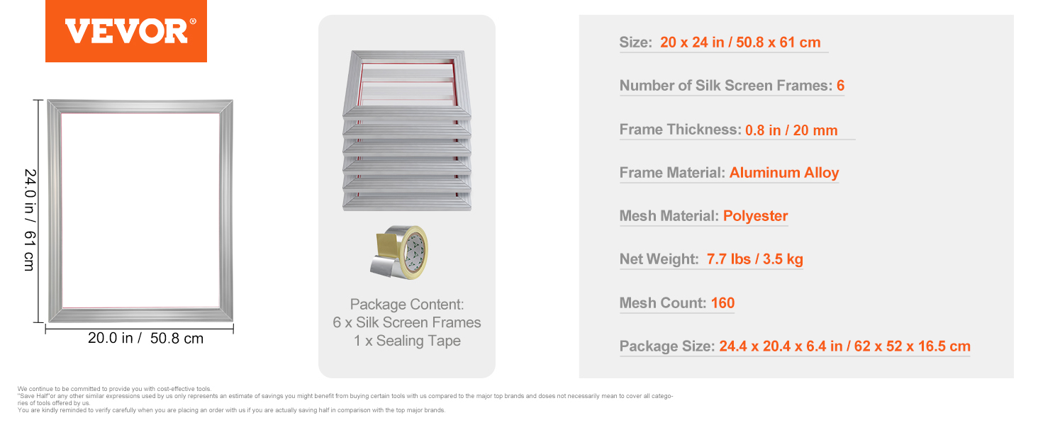 Streamlined Printing: Take your screen printing to the next level with our silk screen frame kit! Featuring 6 pieces of 305 mesh aluminum alloy screen printing plates and a 20x24 inch screen size, you'll have everything you need to create stunning prints with ease With this kit, you can rest assured that your creativity will have no limits.