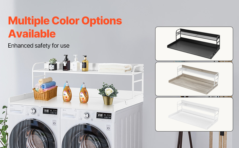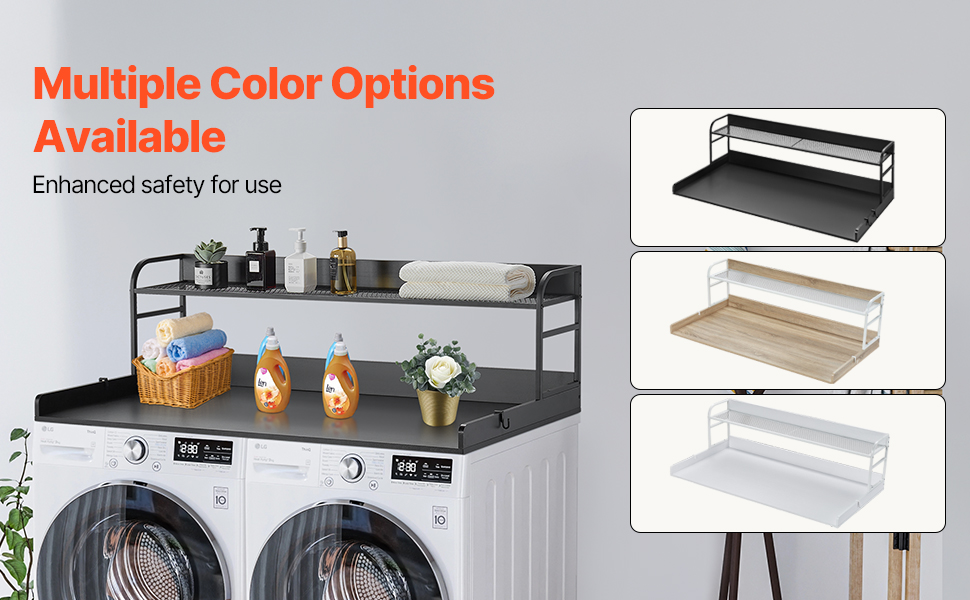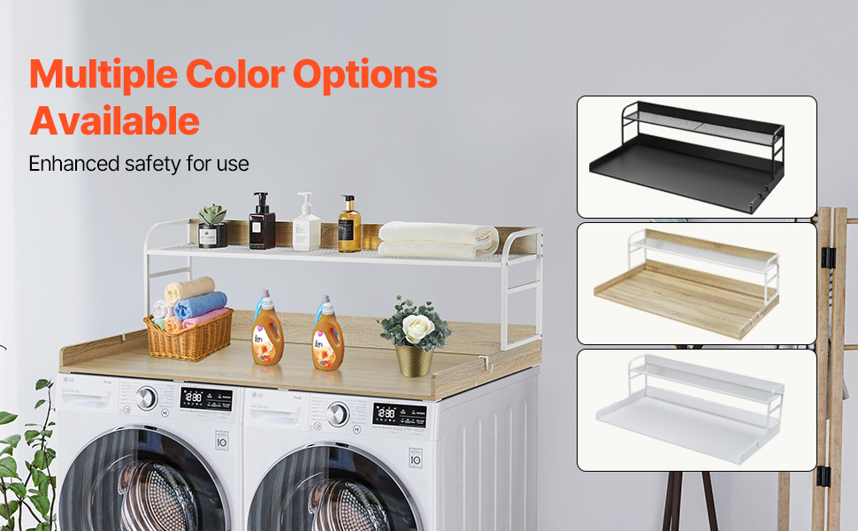 Available in black, white, and oak finishes, this washer dryer counter top complements various washer and dryer models and seamlessly blends with your home decor, creating a visually harmonious space.