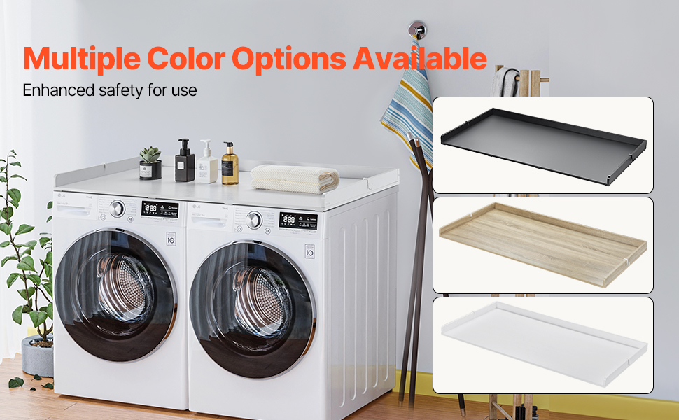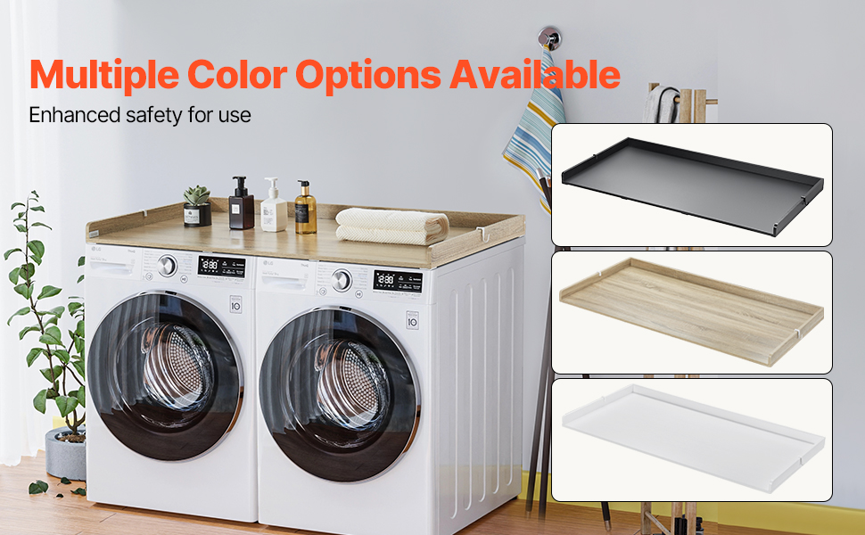 • Various Styles: Black, oak and white washer dryer topper, multiple color choices make this washing machine top cover a seamless addition to any home décor. Its smooth surface, with no holes or sharp corners, combines functionality and aesthetics for a modern, harmonious look.