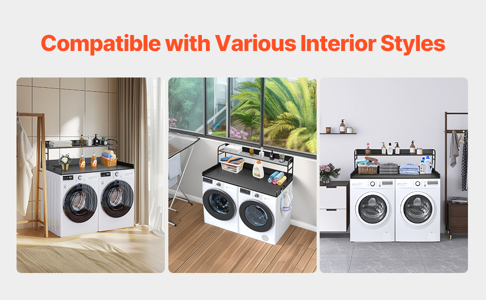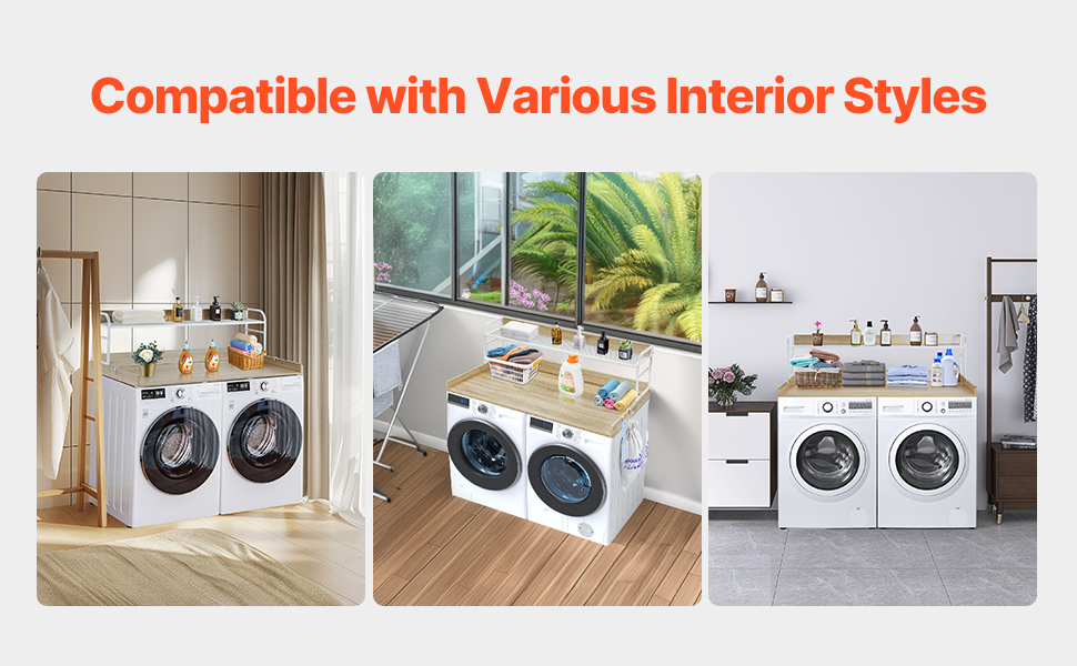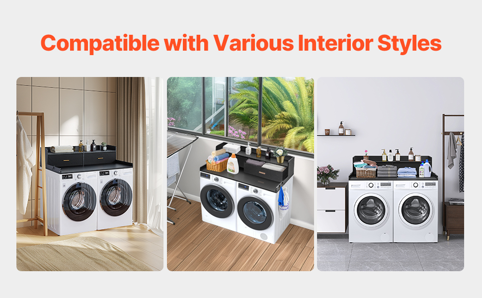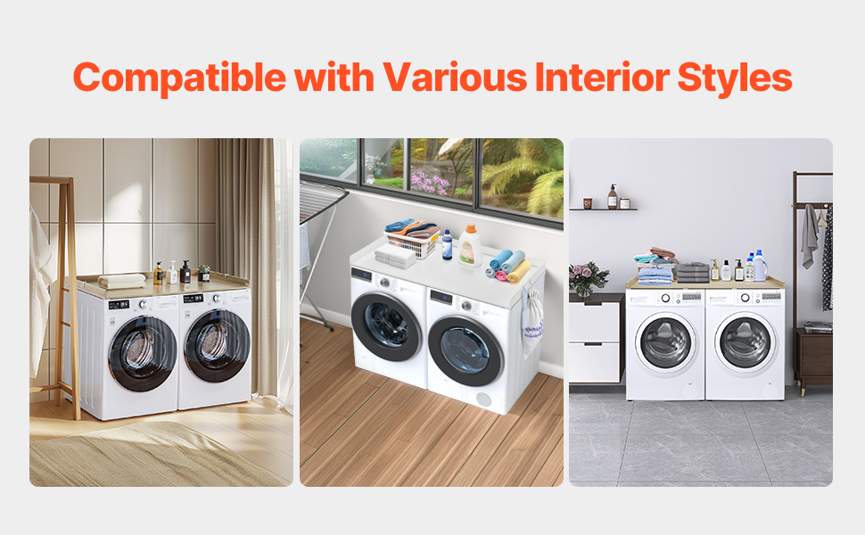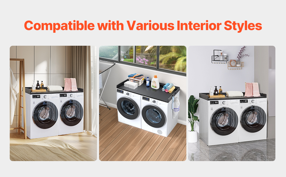 • Various Styles: The minimalist design make this laundry topper for washer and dryer a seamless addition to any home décor. Its smooth surface, with no holes or sharp corners, combines functionality and aesthetics for a modern, harmonious look.