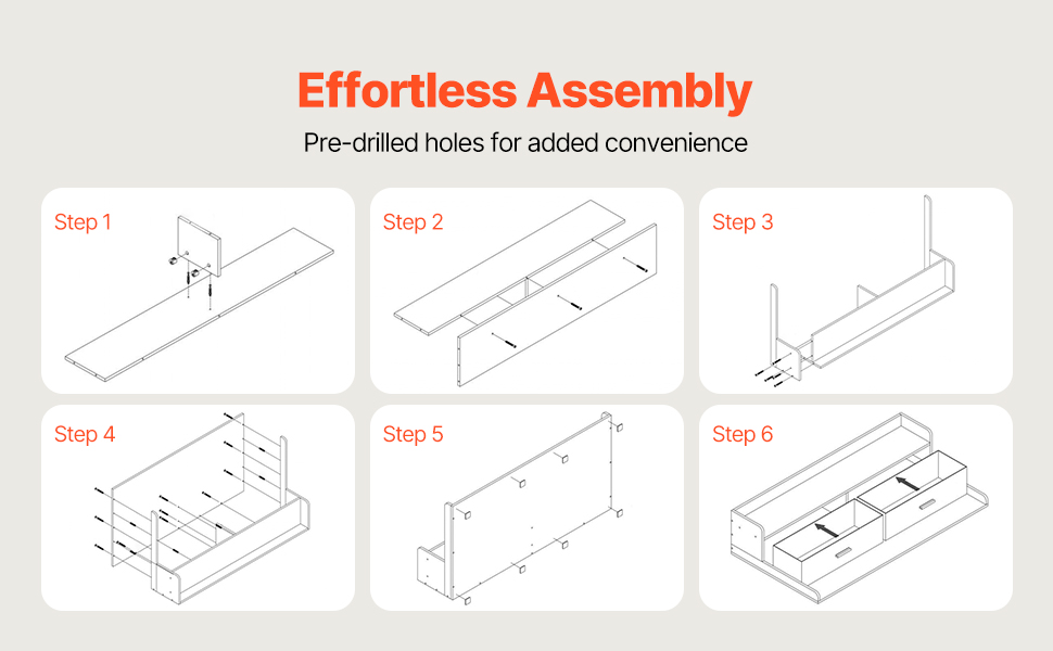 Comes with a clear and detailed manual, including all necessary tools and pre-drilled holes for simple, quick assembly—no drilling needed.