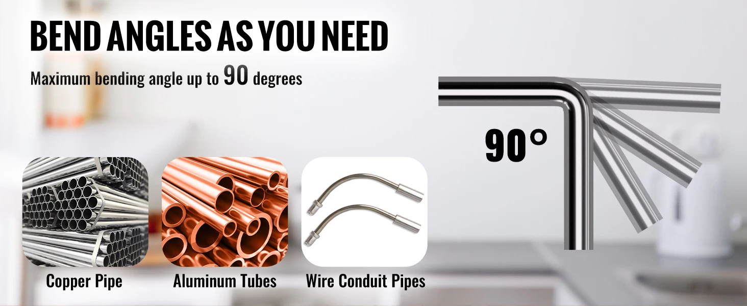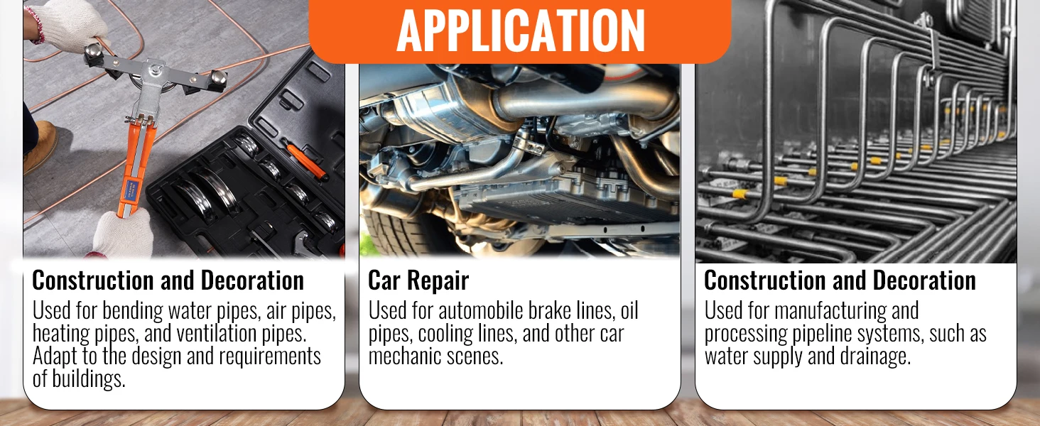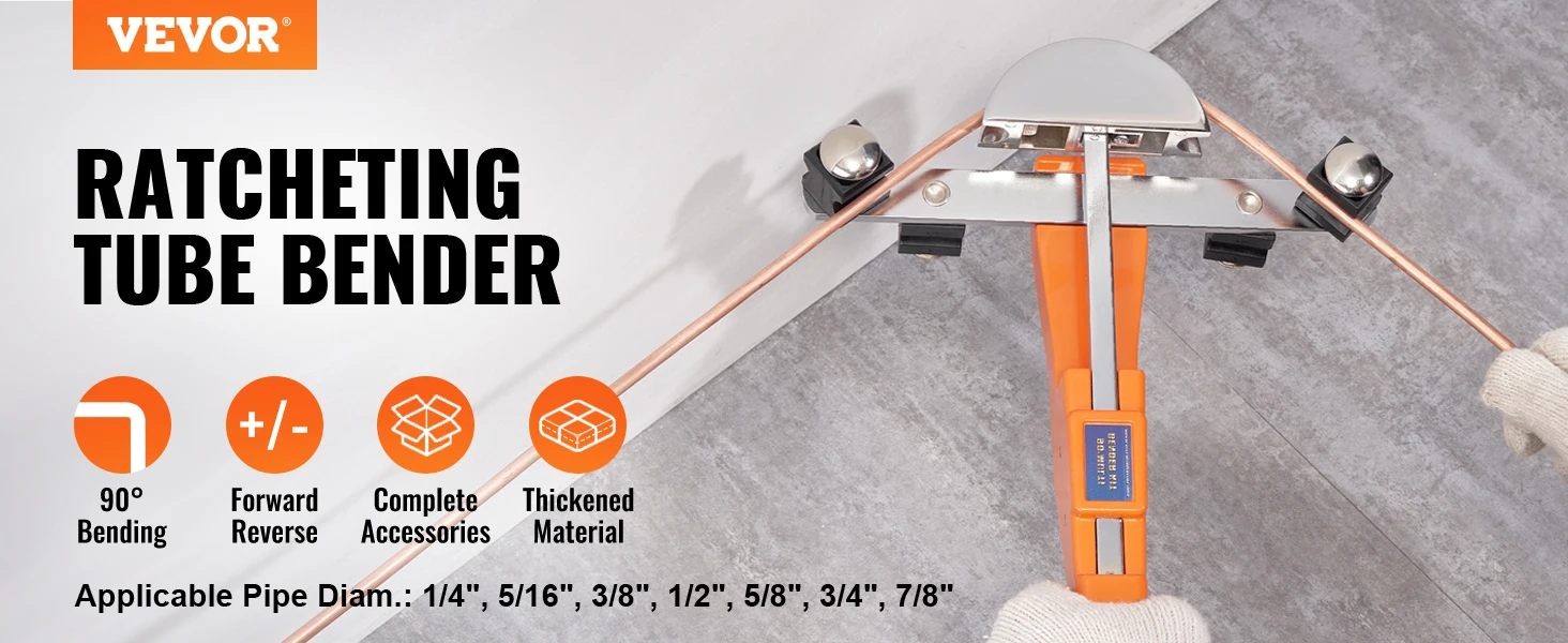 Widely Applicable: Applicable pipe outer diameter: 1/4" to 7/8". VEVOR versatile ratcheting tube bender is widely used in plumbing, floor heating, refrigeration, air conditioning, and hydraulic systems. A professional tool for industrial-grade or occasional use to simplify pipe connections.