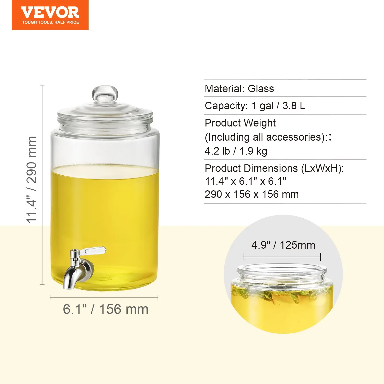 • Selected Food-grade Glass Material: The beverage dispenser is made of high-quality glass, more durable and stable! Add ice cubes at will, chilled beverages without worrying about deformation or breakage. It's also stain-resistant and durable, no more worries about hard-to-clean containers! Simply soak or put it in the dishwasher to easily clean.