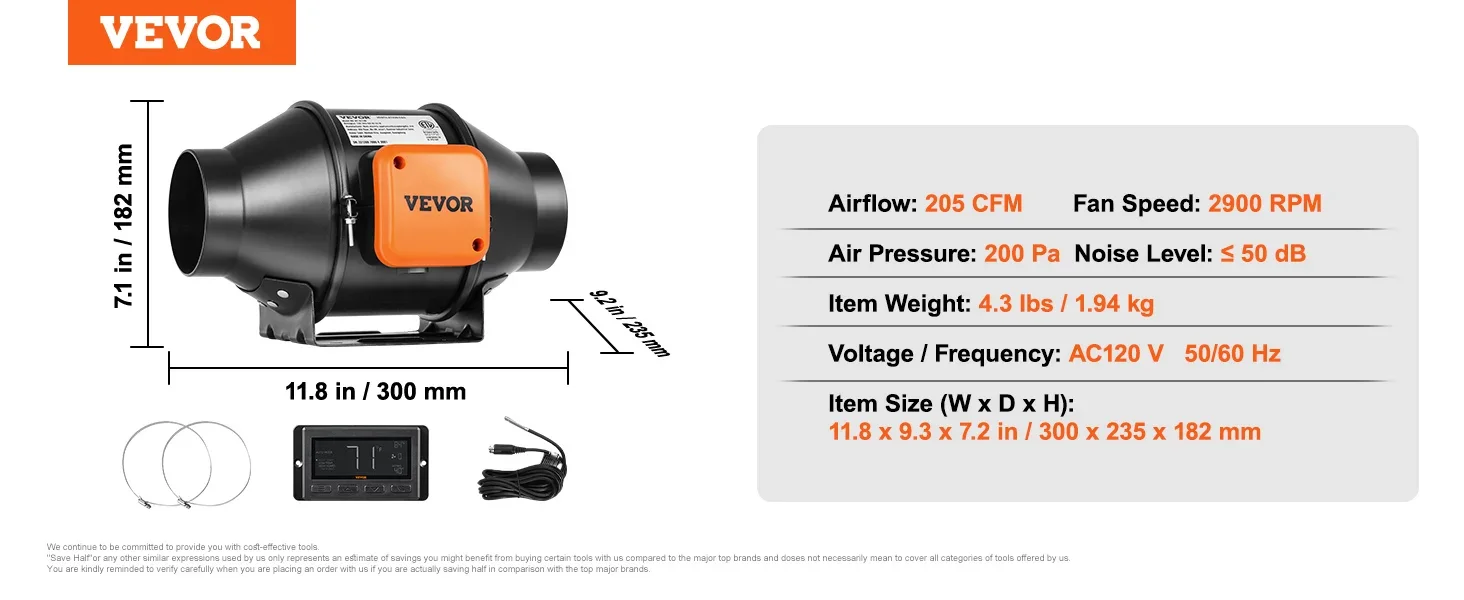 • Power in Silence: Are you tired of loud, obnoxious ducts? Well, get ready to work in silence! Our inline exhaust fan is equipped with a high-quality EC motor that ensures strong power at a low noise of 39 dB, which will not disturb your work and life. At the same time, the motor saves 30% on energy consumption, extending its service life.
