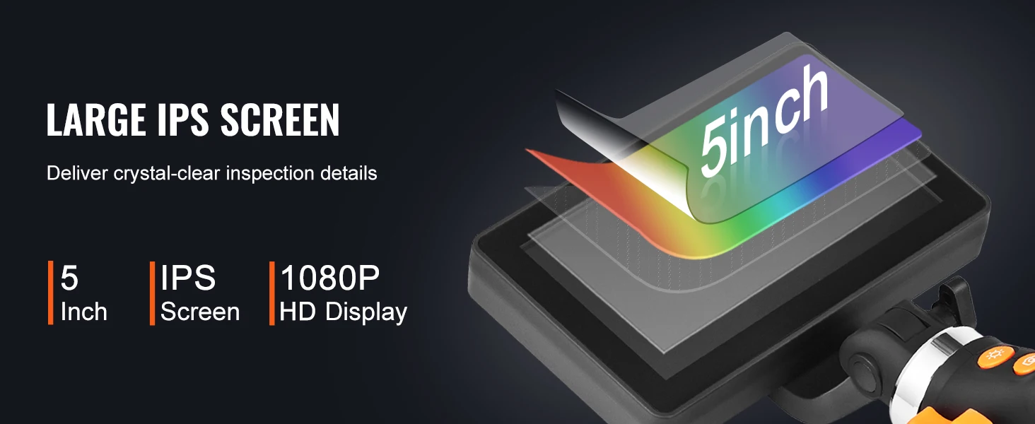 Crystal-Clear 5" IPS Screen: The upgraded large 5-inch IPS screen delivers a 1080P HD crystal-clear image and video with sharp, true colors. And the images can be zoomed by 1x, 2x, 4x, 6x, and 8x, allowing you to better view the interior details. Unique 180° image rotation function facilitates more convenience for your work.