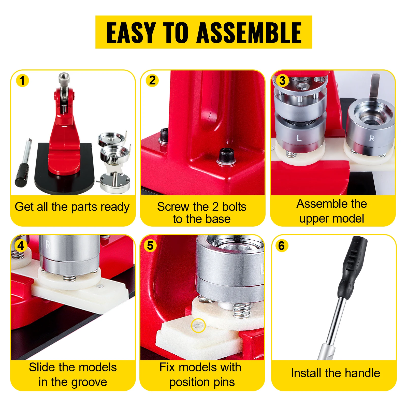Labor-Saving Handle: The handle of the button maker machine is designed with an emphasis on ergonomics. It offers a comfortable grip for you. What's more, the non-slip rubber on the top of the handle will prevent accidents.