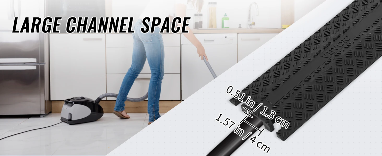 • Well Designed 1 Pack 1 Channel: Are you tired of tangled wires? Well, get ready to prevent an accident before it happens! You will receive a pack of drop-over cable covers measuring 39.37 x 5.12 x 0.79 in. The 1.57 x 0.51 in channel groove design provides enough space for electrical wires, power cords, hoses, and floor cables, protecting them from pedestrians and vehicles.