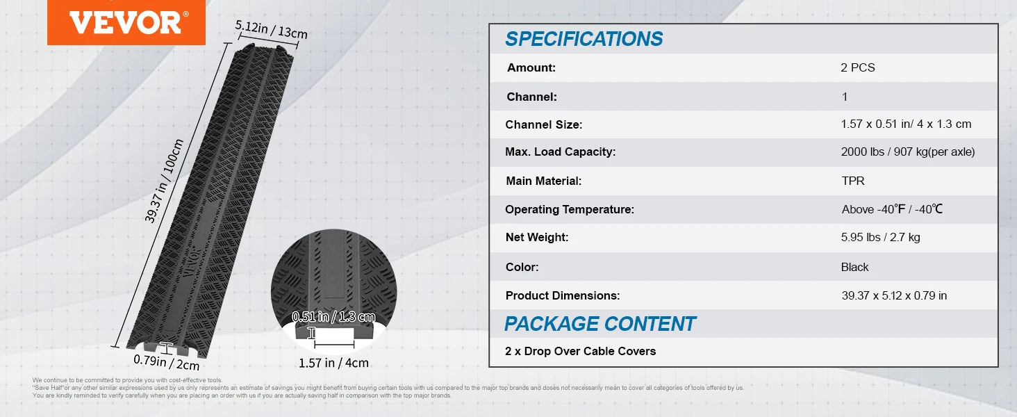 • Peace of Mind for Every Occasion: Enjoy the party and stop thinking about what could go wrong. The drop cable ramp is designed to secure cables and hoses indoors or outdoors while helping avoiding related tripping accidents. It is a must-have for high foot-traffic areas like residential sectors, offices, warehouses, theme parks, etc.