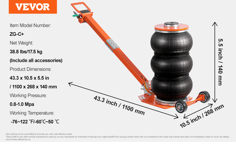 Without lifting, this airbag jack is small and portable enough to be stored in garages and repair stores without taking up much space. Besides, it is easy to reach. Enjoy a fabulous experience by using our easy-to-use air jack!