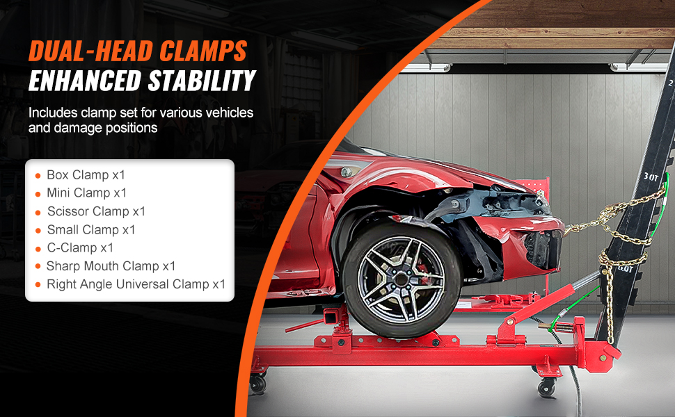 Durable Double-Screw Clamps: Featuring a quenching high-frequency treatment, the frame puller clamp boasts hardness and wear resistance. The double screw design enhances clamping force and stability, supported by a complete set of frame puller auto body tools for efficient maintenance.