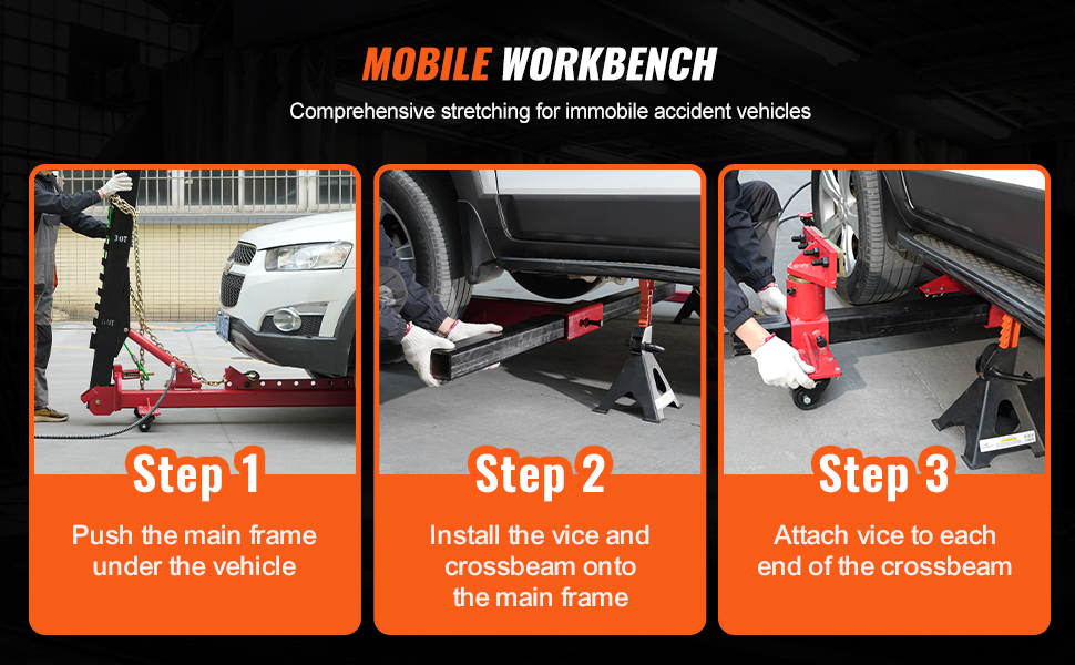 Enhanced Mobility: The main frame and beam vice are mounted on 8 smooth casters, providing easy adjustment and stable support during repairs. With a 2.95" caster diameter, this frame puller auto body is ideal for working on SUVs, cars, trucks, and other vehicle models, ensuring mobility and stability.