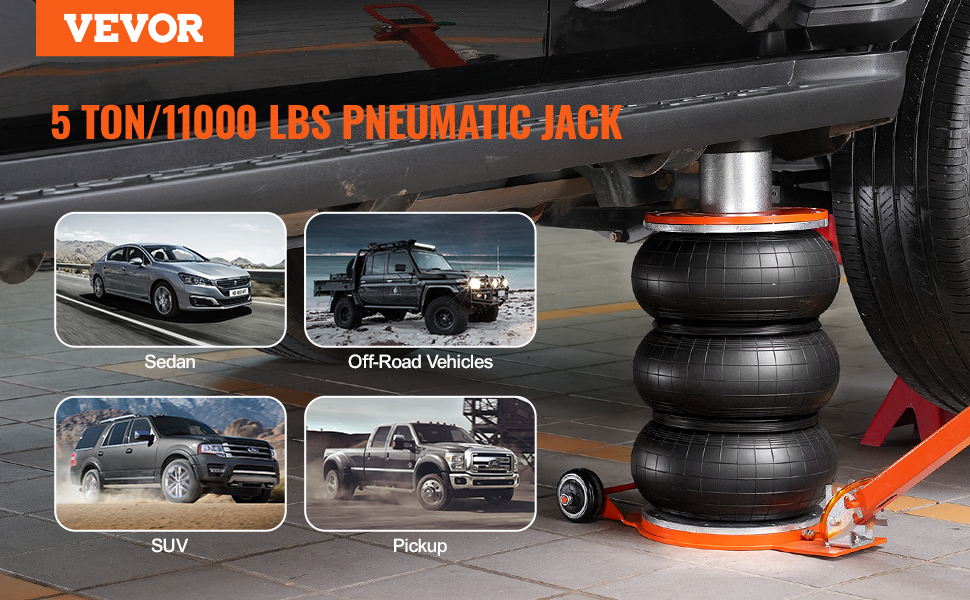 5 Ton Strong Load Capacity: Our portable airbag jack has 5 Ton/11000 lbs high load capacity, which is able to support and help you lift most of the family or commercial vehicles, such as family sedans, pickup trucks, micro trucks, SUVs and so on.