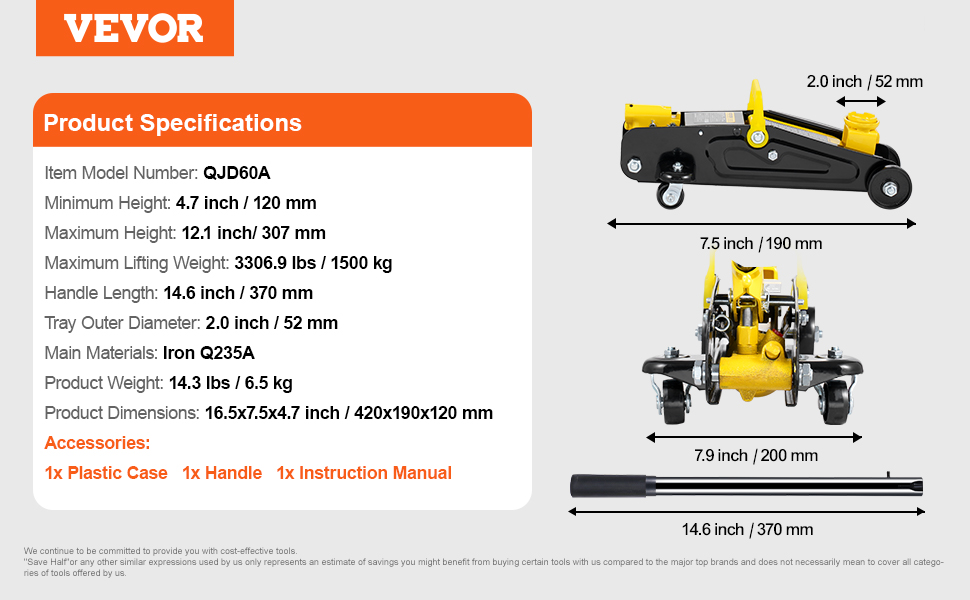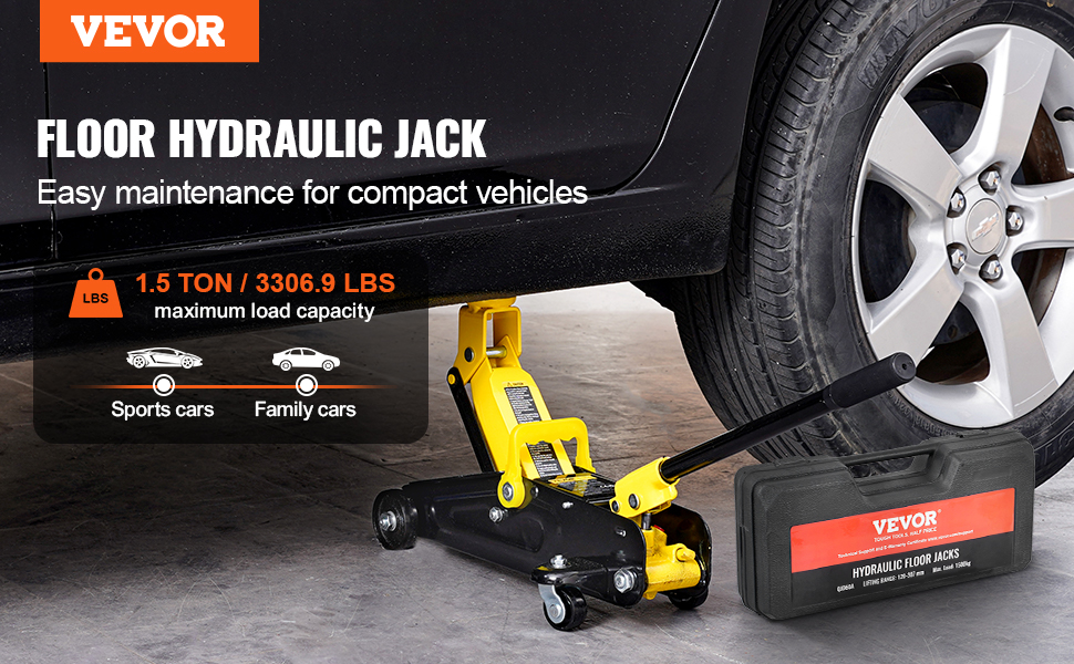Features & Details Jack it Up: 1.5 tons/3300 lbs strong loading capacity, VEVOR's 1.5 ton floor jack can help you raise your car for whatever reason. Ensures your lifting operation...