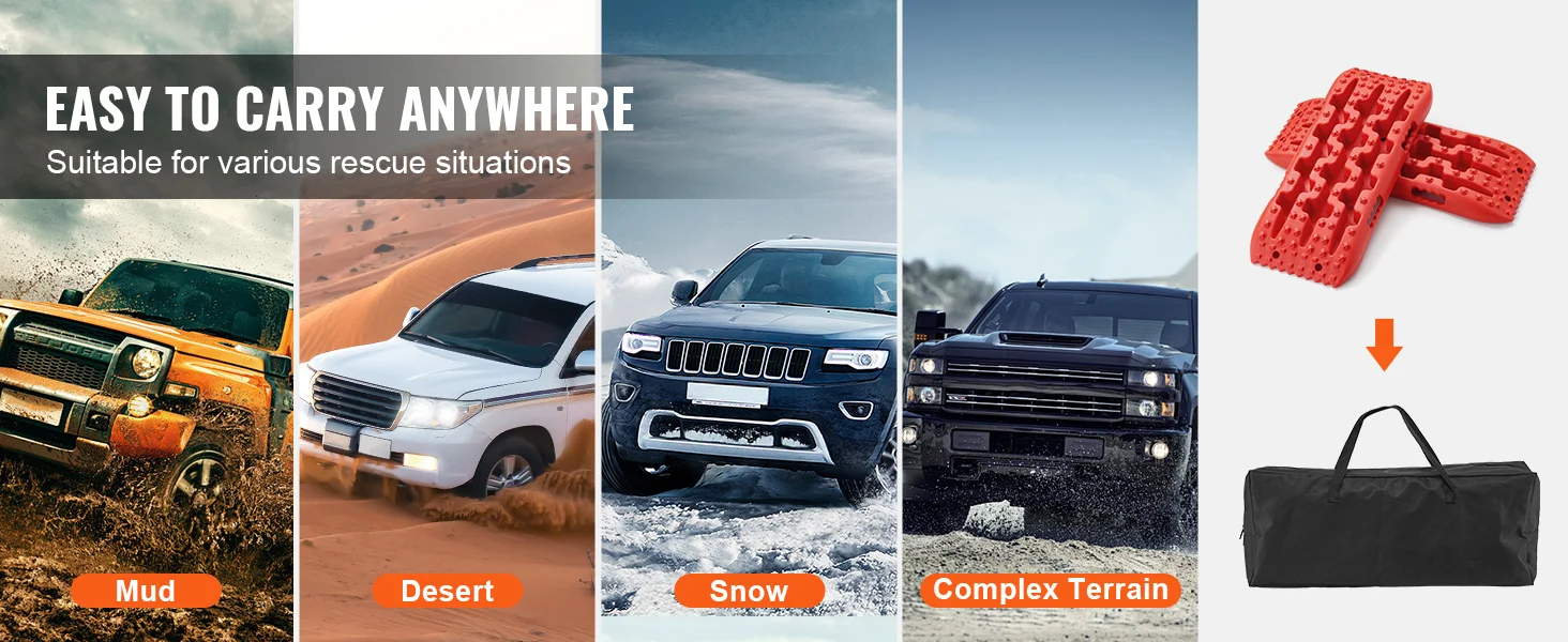 Versatile Uses: Easy to use, the tire traction allows for quick rescue operations in mud, sand, snow, and complex terrains. The recovery board and pull straps can be conveniently stored in the carrying bag for outdoor use, making it an essential tool for addressing emergency situations during outdoor adventures.