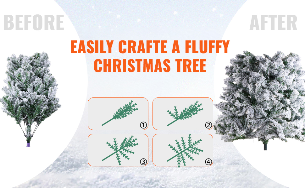 Our holiday Christmas tree is designed for hassle-free assembly, making your holiday preparations a breeze. In just 3 simple steps, you can have the tree set up, fluff and shape the branches, giving your tree a lush and natural appearance.