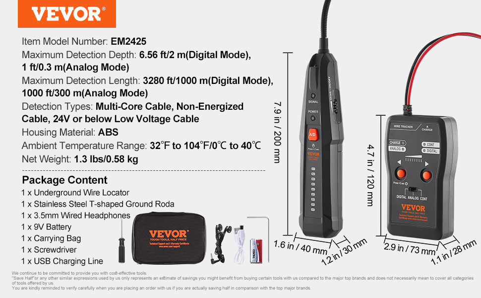 Underground Cable Locator Our underground wire locator features 6.5ft Max. Detection depth and 3280ft Max. Detection length for locating non-energized cable and 24V or below low voltage cable(in digital mode...