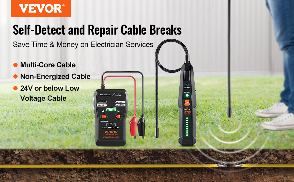 Versatile Applicability: Our underground cable locator is your go-to tool for accurately locating non-energized cables or 24V or below low-voltage cables(in digital mode only). Not applicable to cables with shielding. Get ready to conquer cable locating like never before! (Please note: the cable must be de-energized during cable location.)