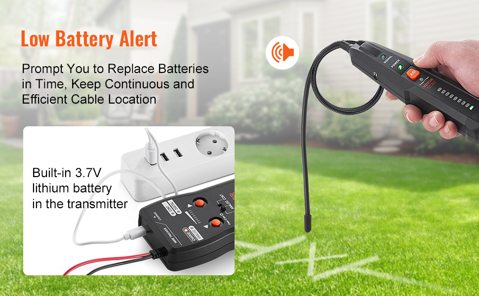 Our underground wire locator features 6.5ft Max. Detection depth and 3280ft Max. Detection length for locating non-energized cable and 24V or below low voltage cable(in digital mode only), not applicable to cables with shielding. Easily detect and repair broken cables, saving you time and money!