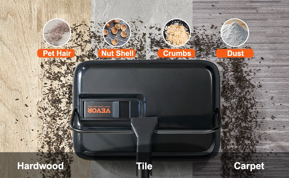 Our floor sweeper manual effortlessly attracts and swiftly collects dirt, crumbs, glass, dust, pet hair, and other debris upon contact with any surface, including carpets, rugs, hard floors, and more.