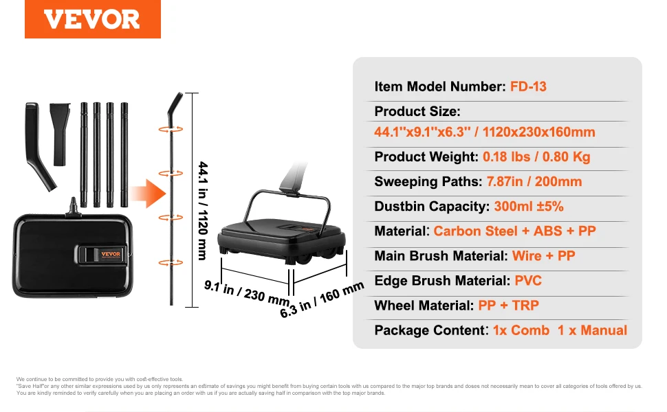 Maintain a Spotless Environment with VEVOR Carpet Sweeper Effortlessly clean any surface with our manual carpet sweeper. No electricity or batteries needed. Its magnet-like roller brush effortlessly picks up...