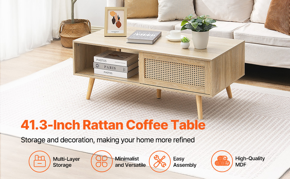 Rattan Design: This rattan coffee table are designed with mid century modern style, which is a good addition to your home, and keeping your room neat and cozy. The PE rattan cabinet door can add some natural elements to your room.