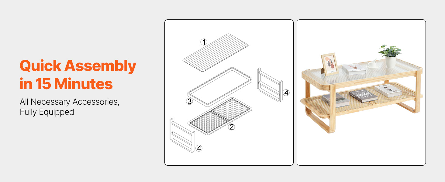 Easy Assembly and Cleaning: This wood coffee table has all the necessary accessories and detailed instructions, enabling quick assembly within 15 minutes. The removable glass top is easy to clean - wipe with a damp cloth.