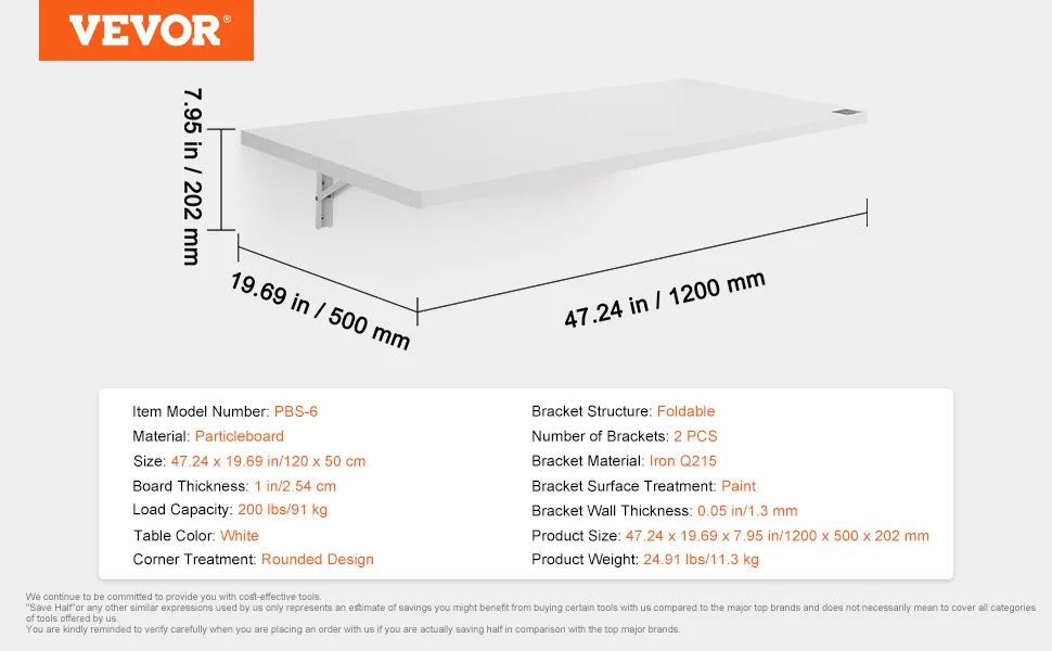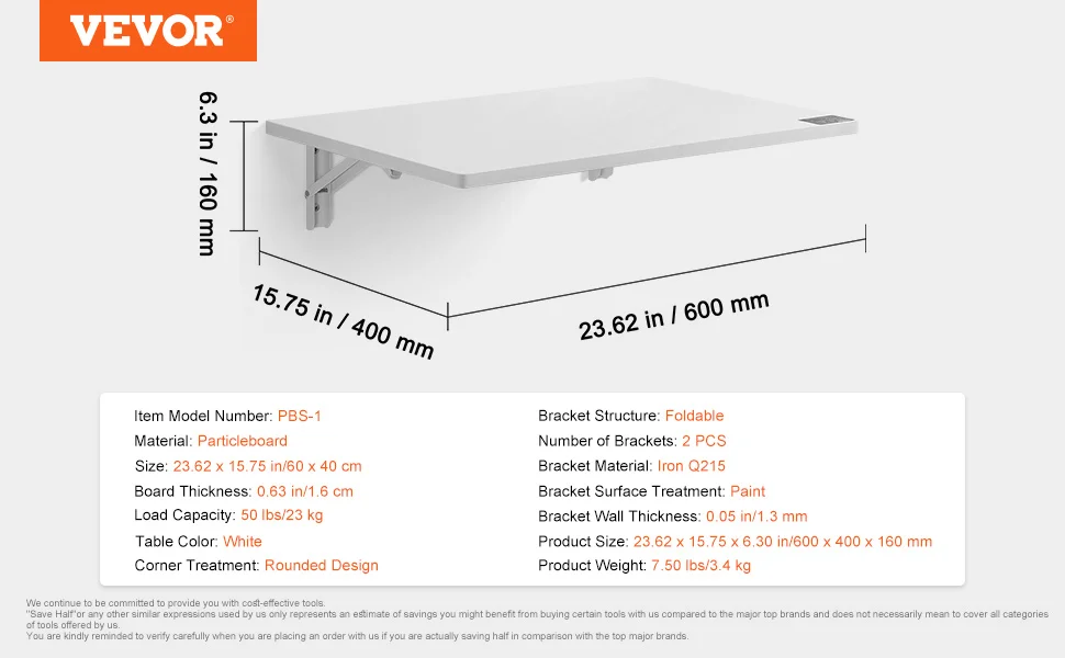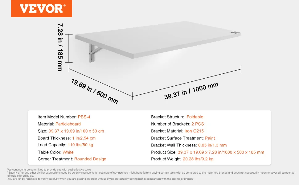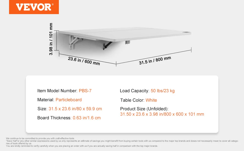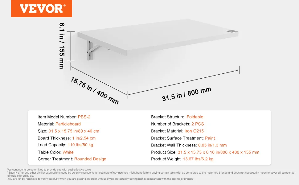110 lbs High Load Capacity: Despite its compact size, this wall mounted desk holds up to 110 lbs thanks to its thick 1-inch material. It's stable for everything from small tools, large tools, laptops, and heavy books to decor items, ensuring everything stays steady.