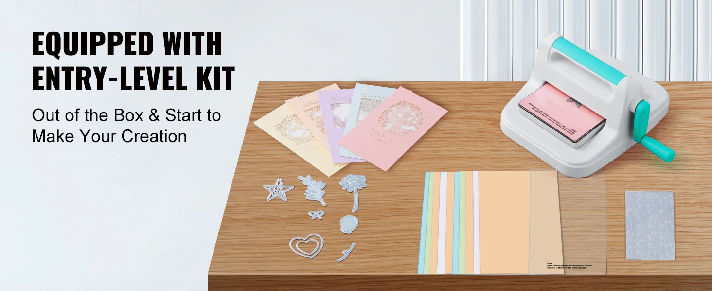 All-Inclusive Kit for Beginners: Unleash your creativity with this complete manual die cutting and embossing machine kit! It comes with a die-cut machine, embossing pad, cutting pads, folder, plate, dies, and cardstocks. Clear instructions make it easy for beginners to start.