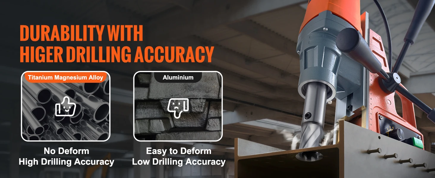 Security and Durability: Your security comes first! That is why the combined overload guard features are in place. The cooling system features fast heat dissipation to save operators from being hurt by instantaneous overpowering and high temperatures during drilling. Besides, the titanium magnesium alloy guide rail has corrosion & wear resistance characteristics, significantly improving the device's service life.