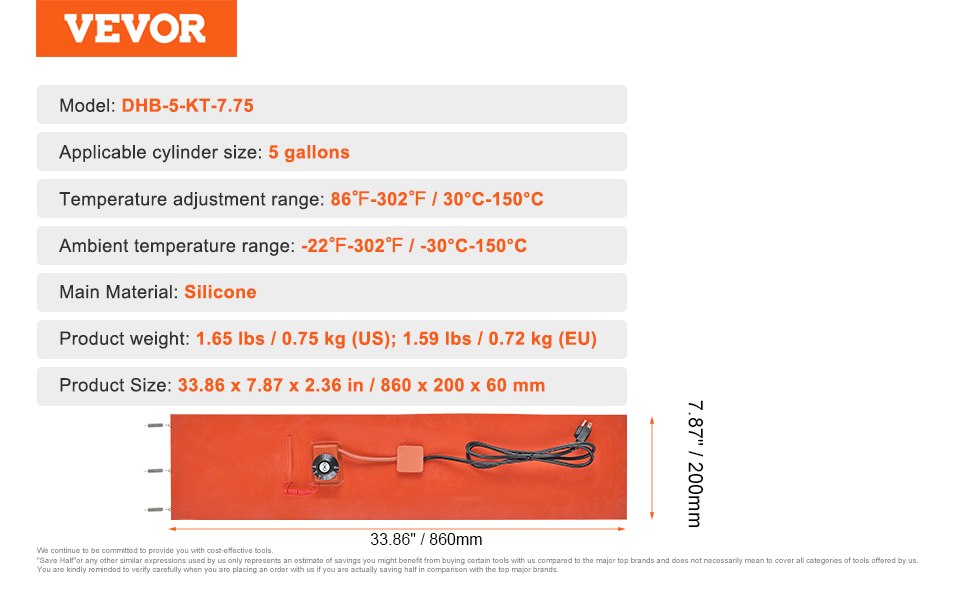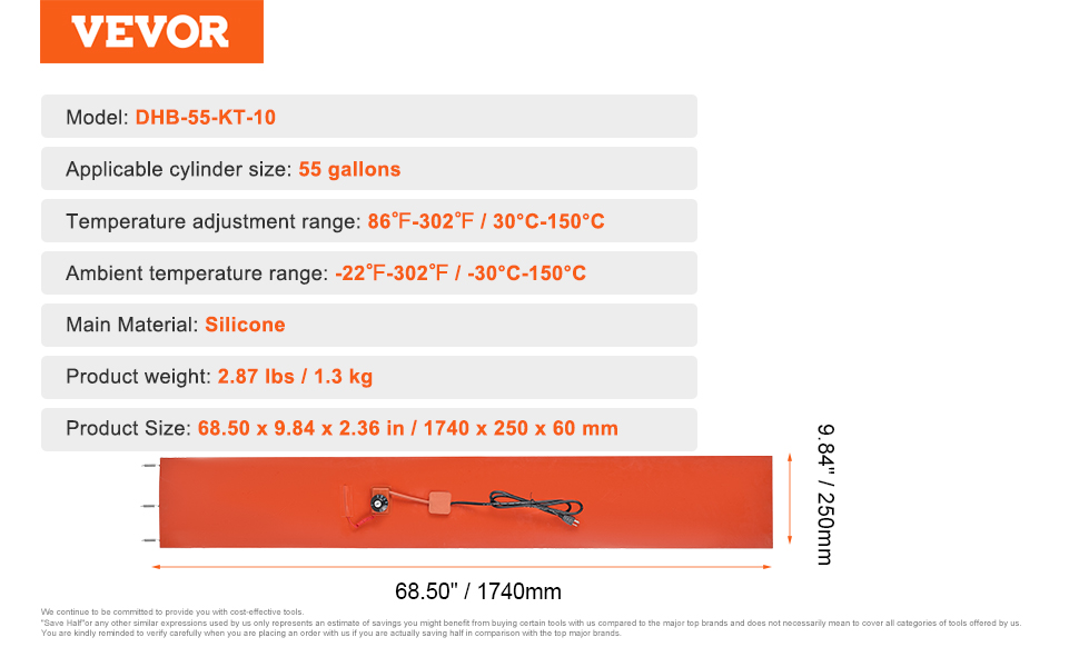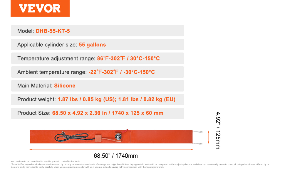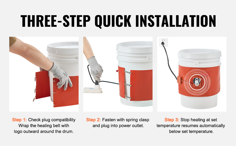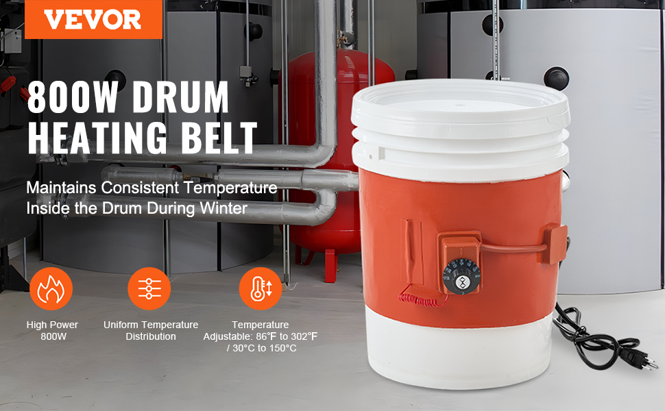 Fast Heating: The VEVOR bucket heating blanket features a high power output and an advanced heating system, ensuring safe and rapid heating. The blanket adheres well to the heating surface, providing high thermal efficiency with uniform, stable, and gentle temperature distribution, maintaining a constant temperature inside the bucket or its contents.