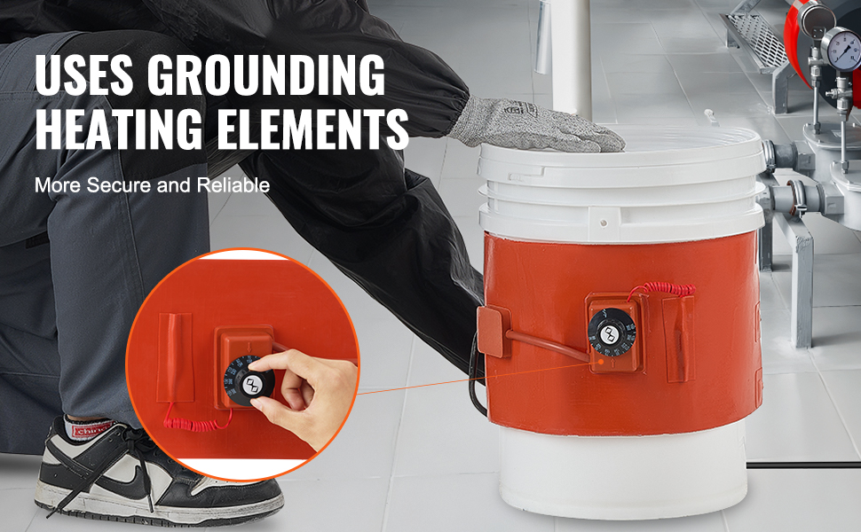 Insulating Full-Wrap Design: The snug-fit design makes it easy to wrap around the bucket. Made with high-strength silicone rubber materials, it ensures durability and long-lasting performance. The heating element is grounded to ensure maximum safety during operation.