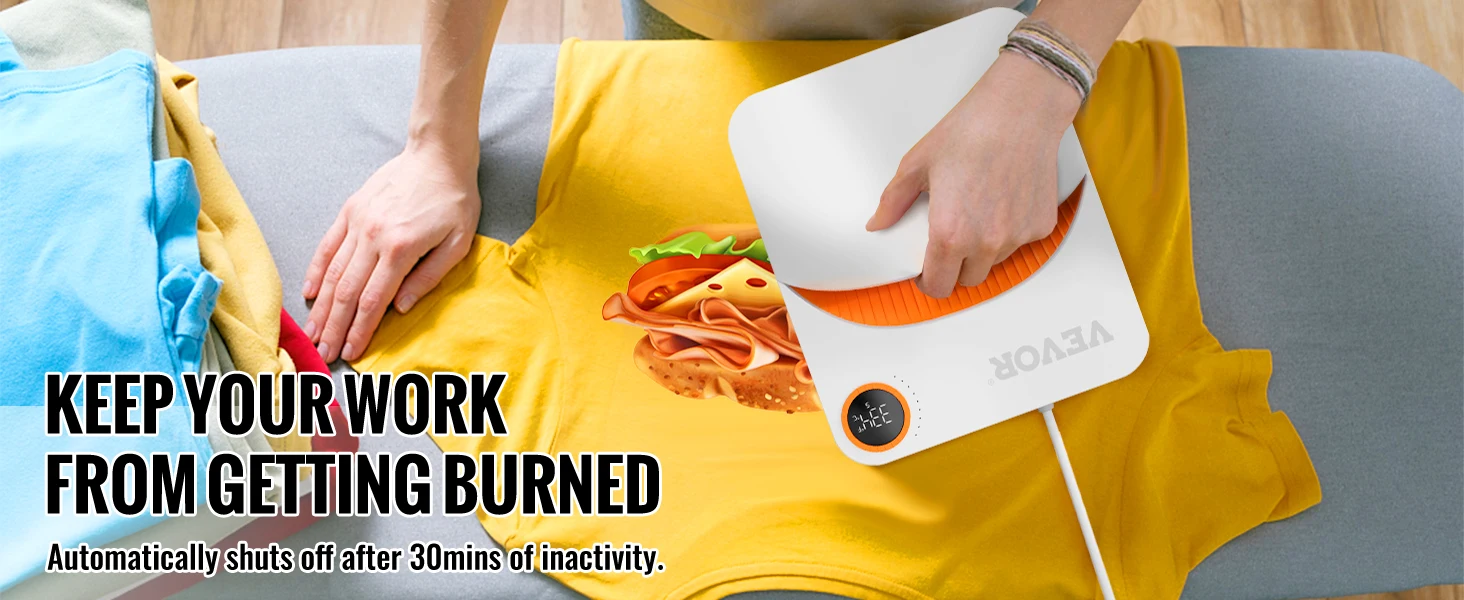 Security First: This heat press machine has passed VDE/FCC/CE/UKCA security certification. Ideal for commercial and family use with peace of mind. Multi-layer heat insulation design and the 30-minute automatic inactivity shutdown security function relieve your worries about constant heating damage during prolonged use.