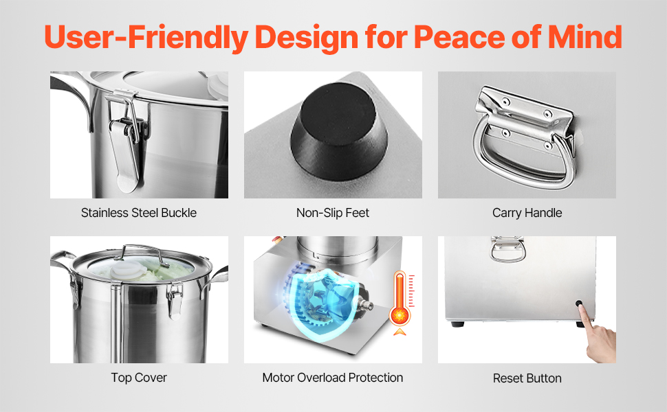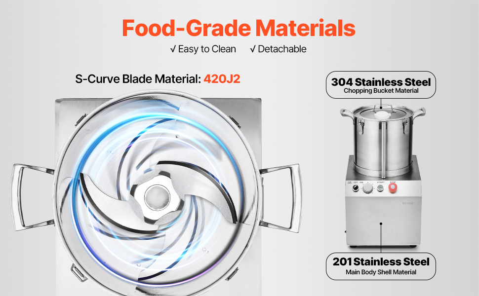 Food-Grade Material: All parts in contact with food are made from food-grade stainless steel. The blades and accessories are detachable and dishwasher safe, making cleanup hassle-free.