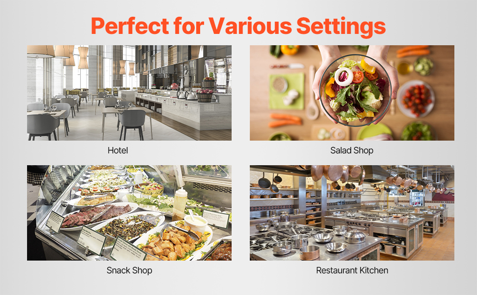 Wide Application: Compact and sleek, this food processor chopper fits easily in any kitchen space, making it ideal for use in hotels, salad bars, snack shops, and restaurant kitchens.