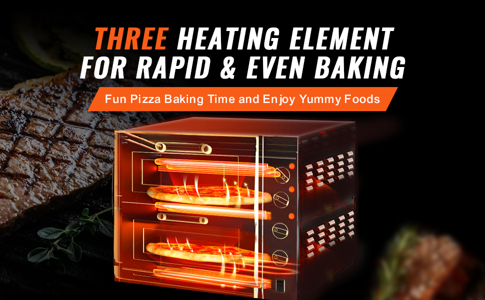 Enjoy Crispy Pizzas Every Time: The powerful commercial pizza oven empowers you to bake crispy and yummy pizza just in few minutes. Coupled with three heating tubes, it unleashes 360° uniform baking and sufficient heat to swiftly cook your food to perfection every time.