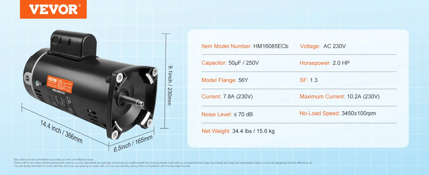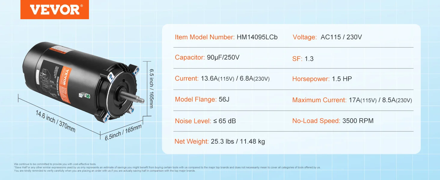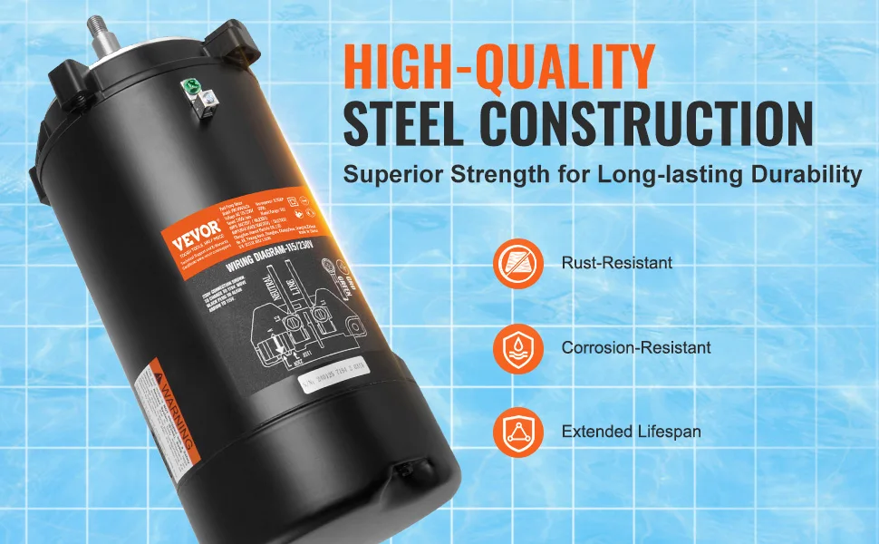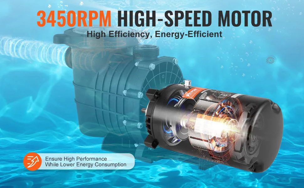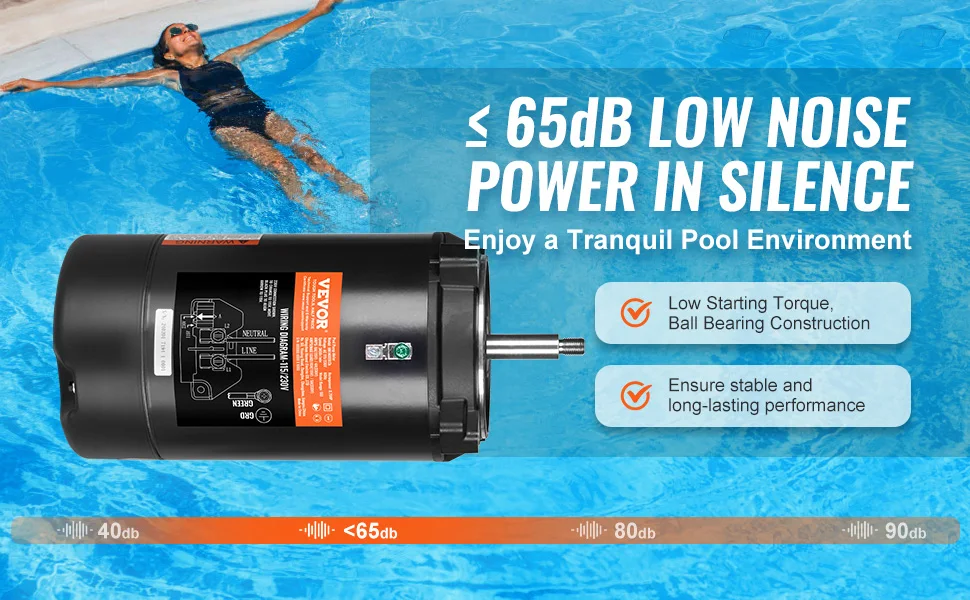 High Efficiency, Energy-Efficient: Our pool pump motor combines powerful performance with minimal energy consumption, operating at 3450RPM high speed while maintaining 65db low noise level. Dive into a refreshing pool experience with reliability and tranquility.