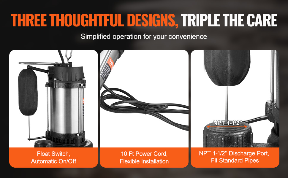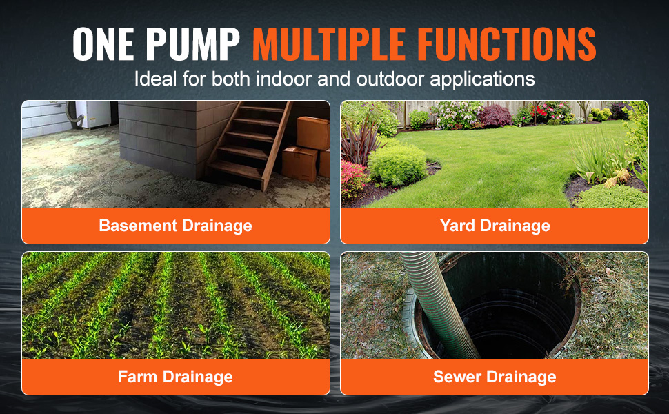 【Universal Fit & Versatility】: The 1.5" NPT discharge port meets building codes and easily connects to standard hoses on the market. Plus, the included 10-foot power cord accommodates most usage scenarios, making our pump incredibly adaptable and ready for any task.