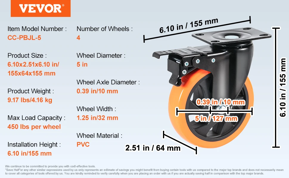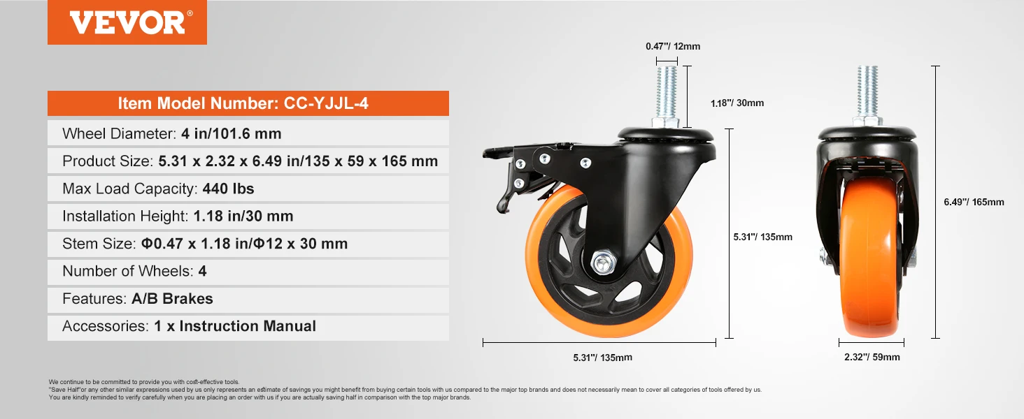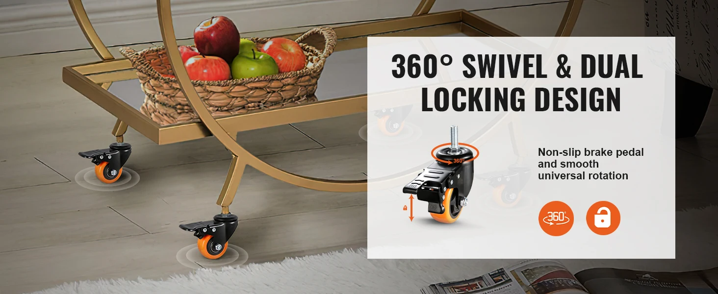 360° Spin & Dual-Lock: Our industrial casters make furniture moves and turns feel like a dance. And when it's time to stay put? Just one click locks both the wheel and swivel. Enjoy the freedom, then lock it down when you need it. Fun and secure, all in one!