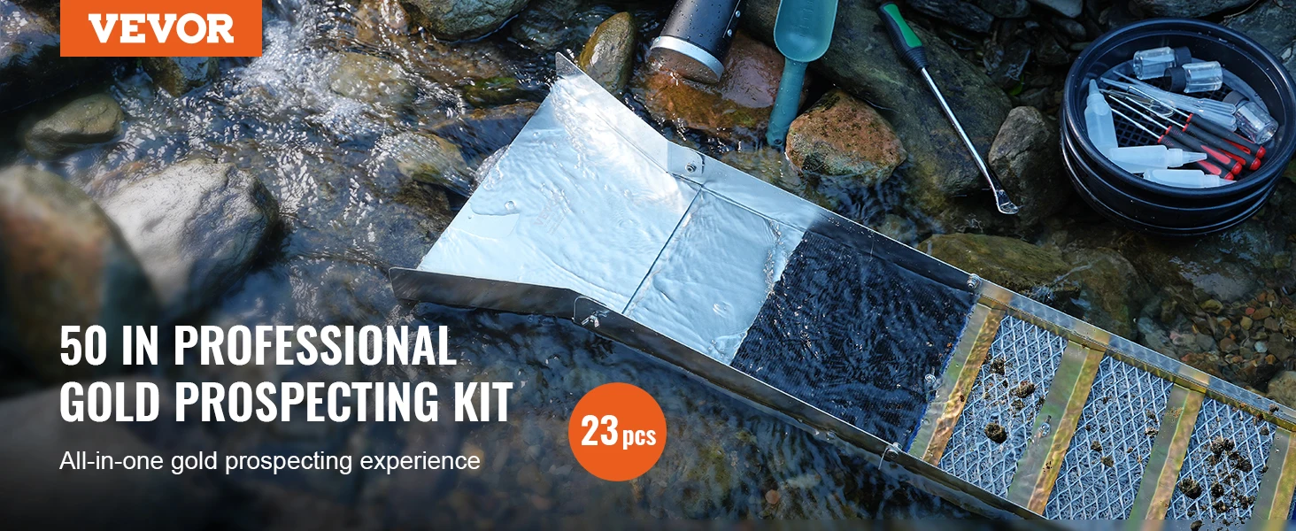 Our 23 pcs gold panning kit gathers everything you need for gold prospecting, including a gold sluice, classifier screens, a separating magnet, gold collection bottles, and more. Whether you're a novice or an experienced gold prospector, this kit has got you covered for all your needs.