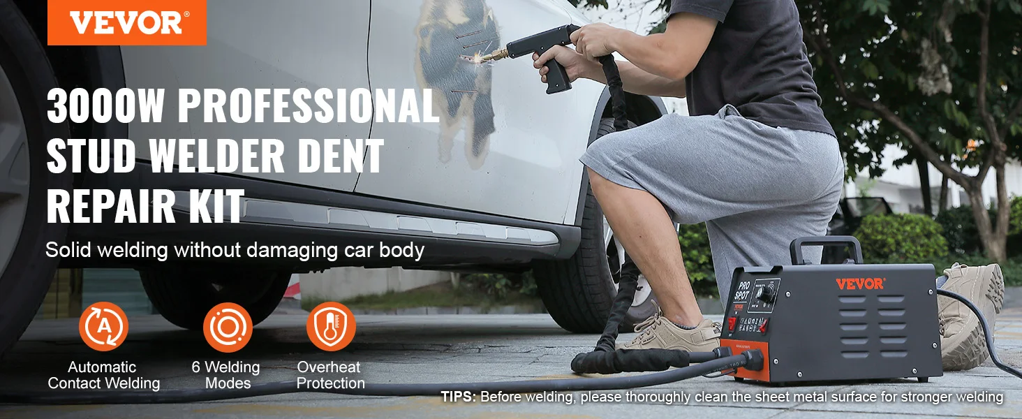 With a robust power output of 3000 watts and automatic contact welding, VEVOR stud spot welder delivers an all-in-one welding solution. Featuring 6 functional modes, it encompasses carbon steel, stainless steel, iron, and galvanized sheet metal, catering to various materials for dent repair.