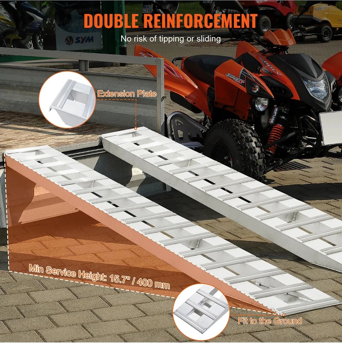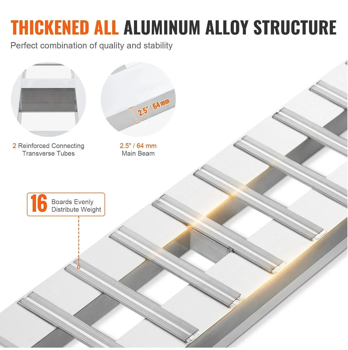 Premium Ramp:This aluminum ramp is a perfect blend of quality and strength. Made from high-grade aluminum alloy and professionally welded, it is highly durable and resistant to breakage. The reinforced stair-step design ensures even weight distribution, while the 2.5" / 64 mm thick main beam withstands heavy loads without bending. 2 additional reinforcing crossbars on the back provide extra support.