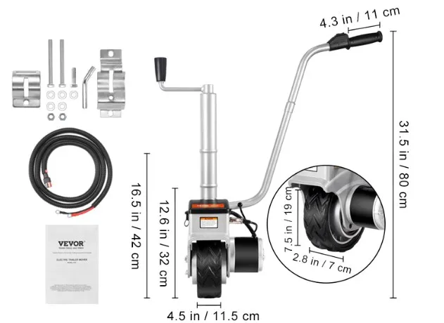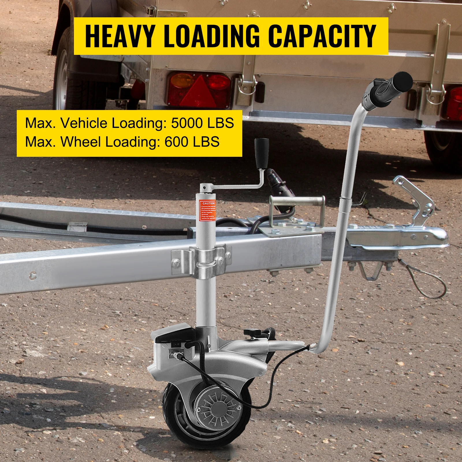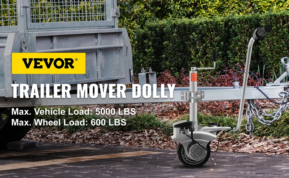 5000 lbs Loading Capacity: This trailer mover has a pulling capacity of up to 5000 lbs and a jockey wheel load of 600 lbs, which allows you to steer the trailer effortlessly. And the electric components inside the control box help protect the motor from overheating damage. The powerful 12V DC 350-watt motor provides power to the gear mechanism, and the reduction gears convert motor power into moving force.