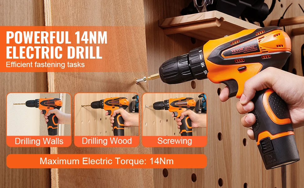 14 Nm Powerful Electric Drill: The household tool kit for home includes multiple different sizes of drill bits to meet various working needs, allowing you to find the right tool for different situations. The large-capacity rechargeable battery provides convenient cordless use for lasting performance.