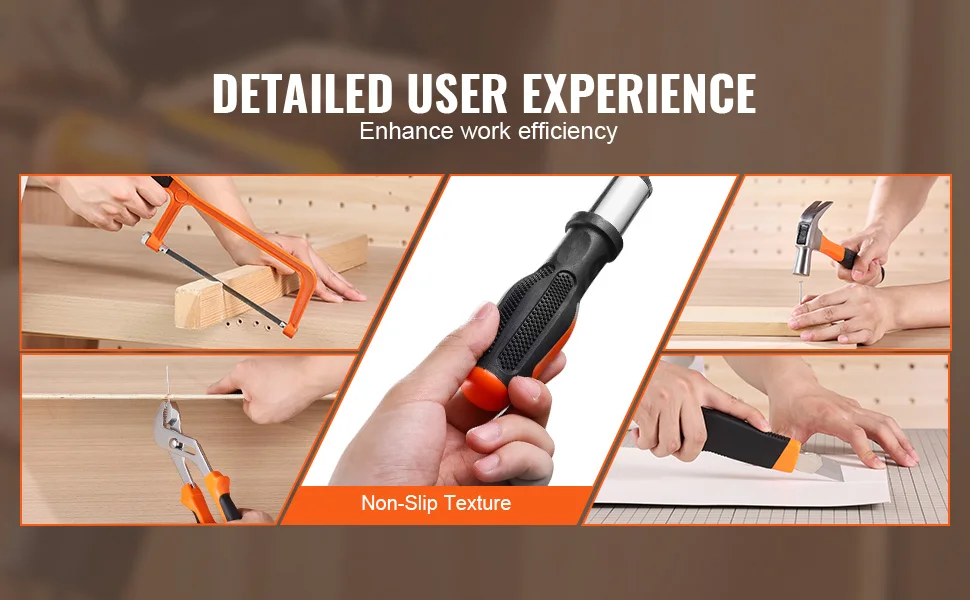 Ergonomic Design: The VEVOR hand tool set features an ergonomic design for a comfortable grip, reducing fatigue during prolonged use. Non-slip design helps you use the tools more effectively, improving work efficiency.