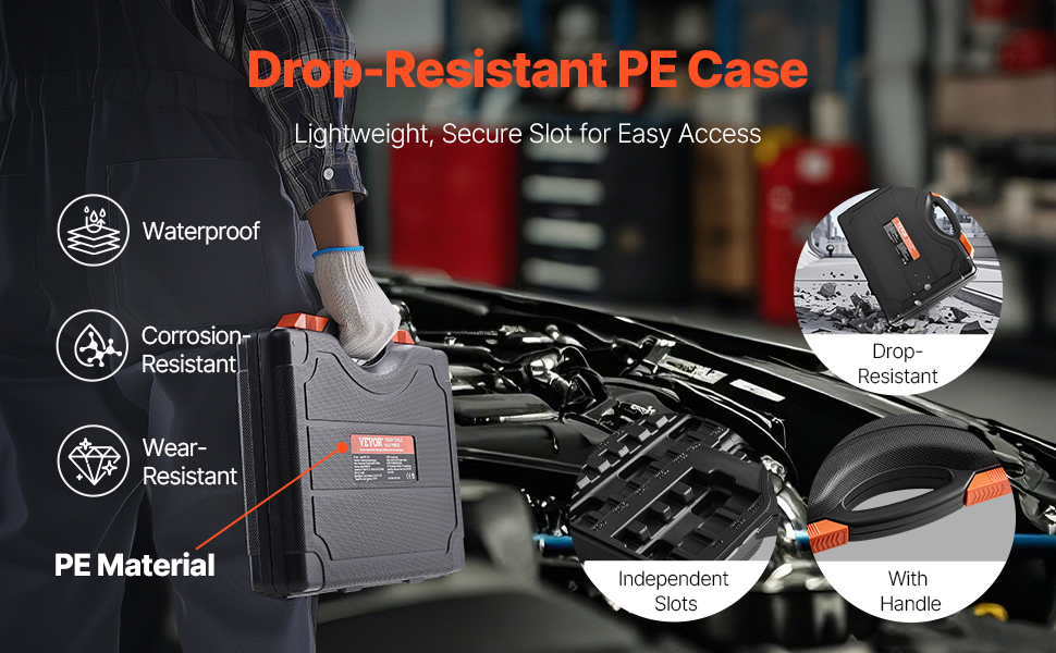 Drop-Resistant Case: Our torx set comes with a durable black PE storage case with dedicated slots for each bit socket. The secure-fit design ensures the bit sockets stay firmly in place during drops, preventing scattering, loss, or damage.