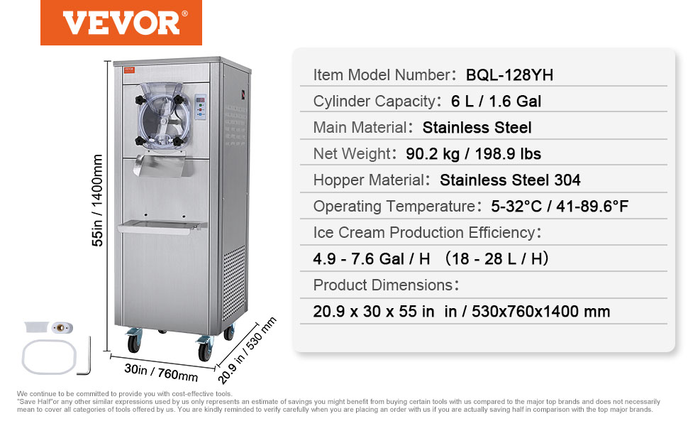 • Solid and Durable: Constructed with high-quality SUS201 stainless steel and featuring a food-grade SUS304 stainless steel refrigeration cylinder, the hard serve commercial ice cream maker is sturdy, rust-resistant, and easy to clean, ensuring longevity and food safety.