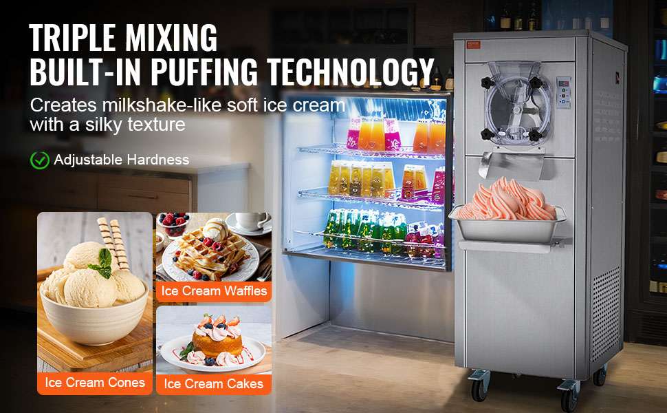 • Smooth Taste Ice Cream: With a built-in 6 L/1.6 gal cooling cylinder, advanced puffing technology, and fast-rotating triple mixer, our ice cream maker ensures every scoop has a creamy, silky texture that delights the palate.