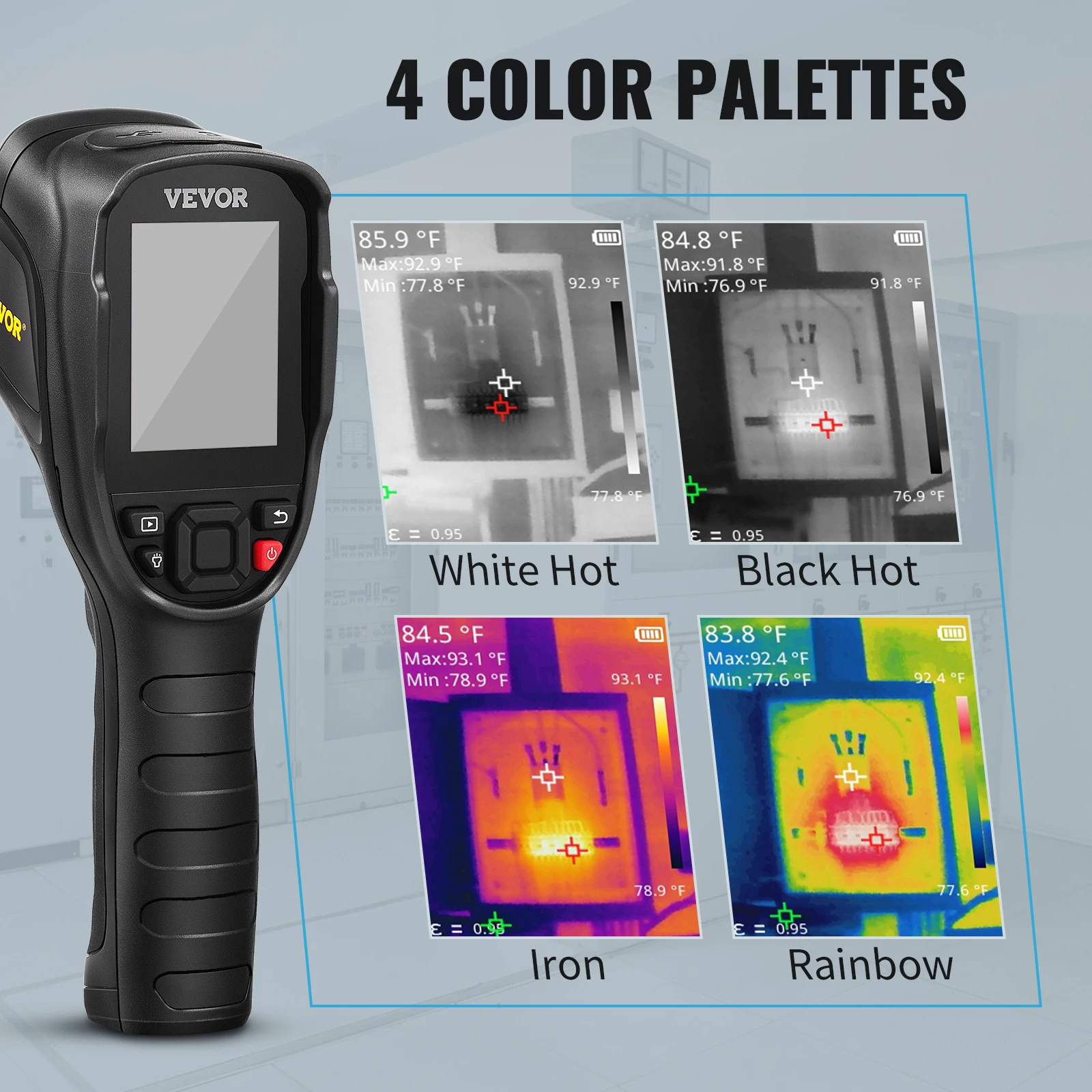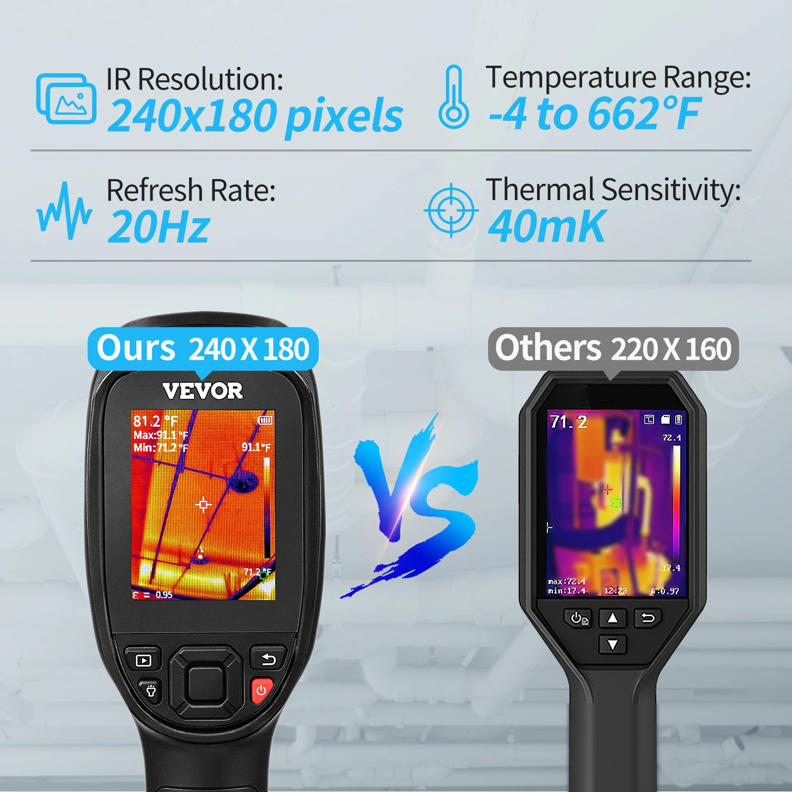 Pinpoint the Source of Problems: VEVOR Thermal Imager helps you see the invisible infrared waves during home inspections, HVAC troubleshooting, fire fighting, and professional detection of electrical or mechanical systems. It makes identifying air leaks, defective flashing, and missing insulation issues a relative breeze for anyone.