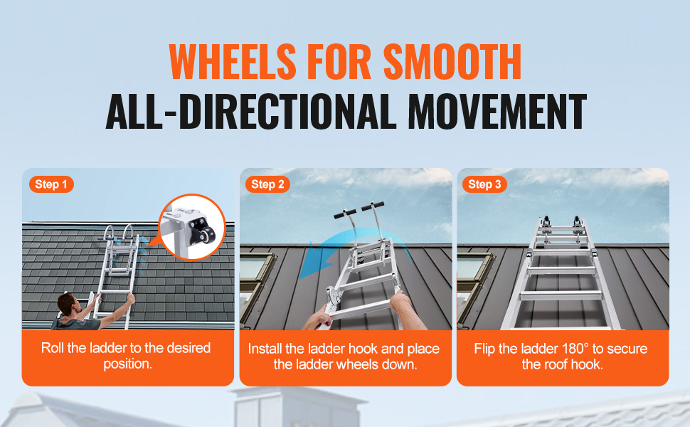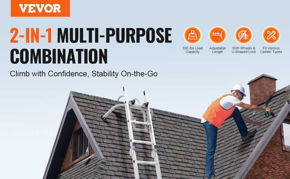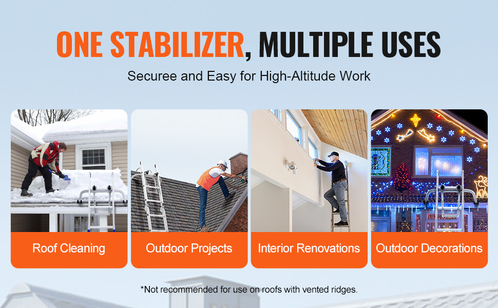 Designed for multiple applications, our ladder stabilizer makes high-altitude work easy and safe. Ideal for roof cleaning, outdoor tasks, indoor renovations, and exterior decorations. Note: Not recommended for roofs with ventilated ridges.