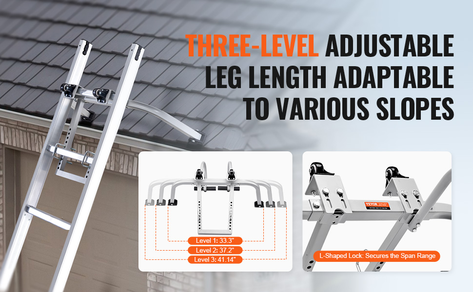 330 lbs High Load Capacity: With a load capacity of up to 330 lbs, this carbon steel ladder stabilizer ensures your work is safe and secure. The dual-row adjustable mounting holes allow you to adapt to various slope surfaces, ensuring smooth operation.